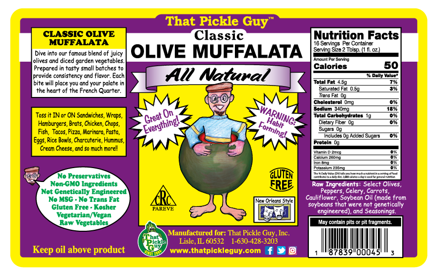 Flavor Profile: A briny, savory mix of premium olives, crisp vegetables, and a subtle kick of heat. Inspired by the bold flavors of New Orleans, this zesty blend brings a taste of the French Quarter to every bite.